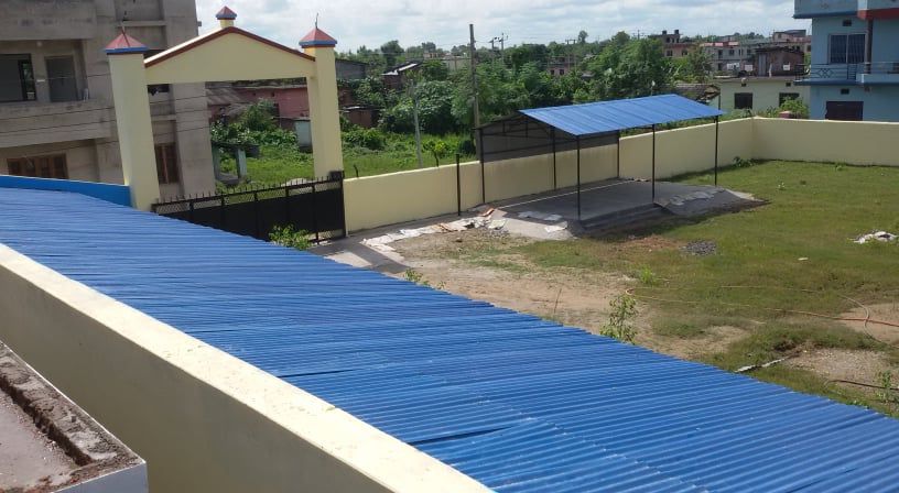 The classrooms are already under roof, the fence is mostly finished - Beginning of March 2019